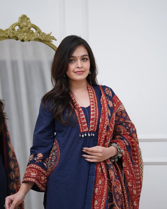 Featuring beautiful Heavy Suit Set which is beautifully decorated potli🪡. It is paired with matching duppata (RRRD01)