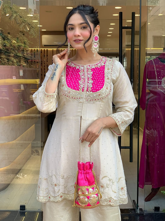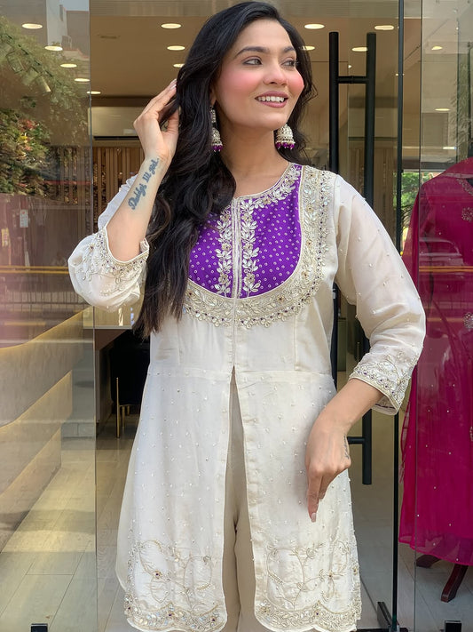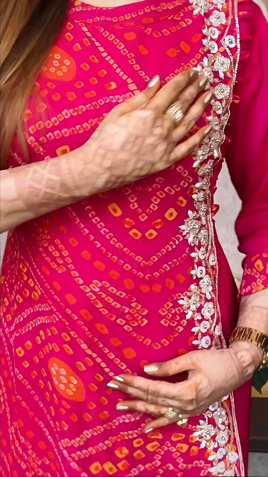 Export Chinnon Premium Bhandej Hand Work Kaftan Pattern Kurti With Premium Pant At Manufacturing Rate (WACD126)01