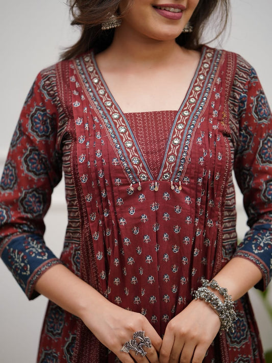 🌹🌹Pure fine Cotton fabric Kurti with Pant with cotton 100-100 Dupatta🌹🌹 (SWRED606)