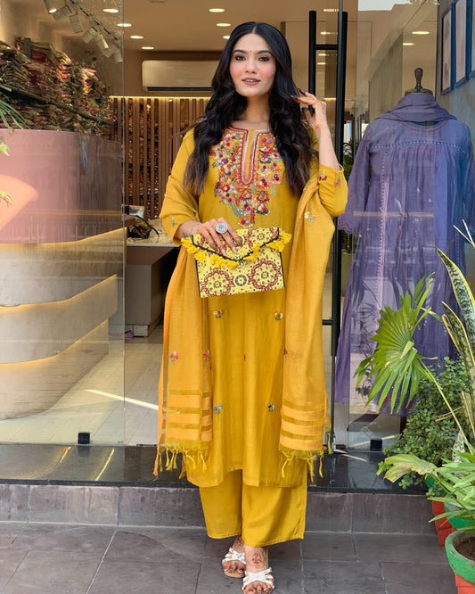Featuring beautiful Heavy Suit Set which is beautifully decorated with handwork weaving and prints. It i paired with matching pants and dupatta. (SWRD100)