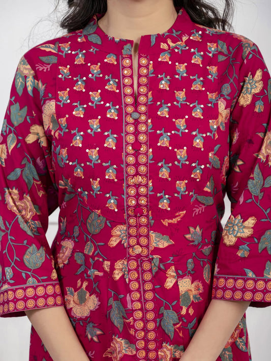 🌹🌹Pure fine Cotton fabric Sequence Work Kurti with Pant with cotton 100-100 Dupatta🌹🌹(WARED414)