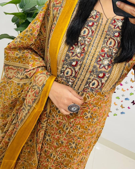 🌹🌹Pure fine Cotton fabric Havy Embroidery Work Kurti with Pant with cotton 100-100 Dupatta🌹🌹