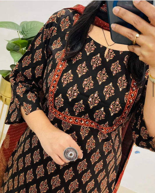 🌹🌹Pure fine Cotton fabric Sequence Work Kurti with Pant with cotton 100-100 Dupatta🌹🌹(WARED415)