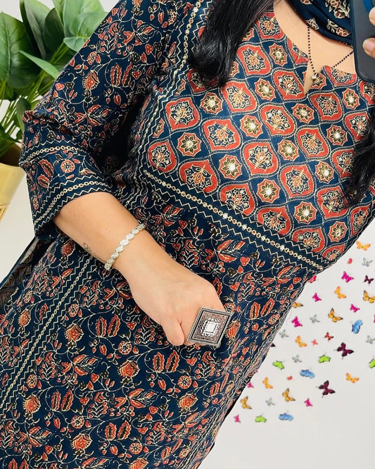 “ NEW FULL COTTON PRINT HAND WORK STRAIGHT KURTI PANT MALMAL DUPATTA ARRIVAL 😍💖(SWRED67)