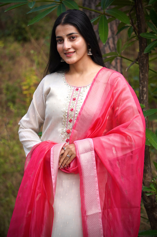 Shop our latest collection of Chanderi suit with cotton pant and dupatta 💗(SWRED40)