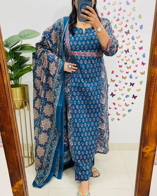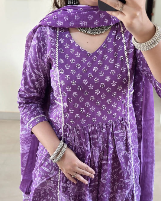 ♥️♥️“ NEW FULL COTTON PRINT HEVY HAND WORK ANARKALI KURTI ;PANT MALMAL DUPATTA ARRIVAL 😍💖