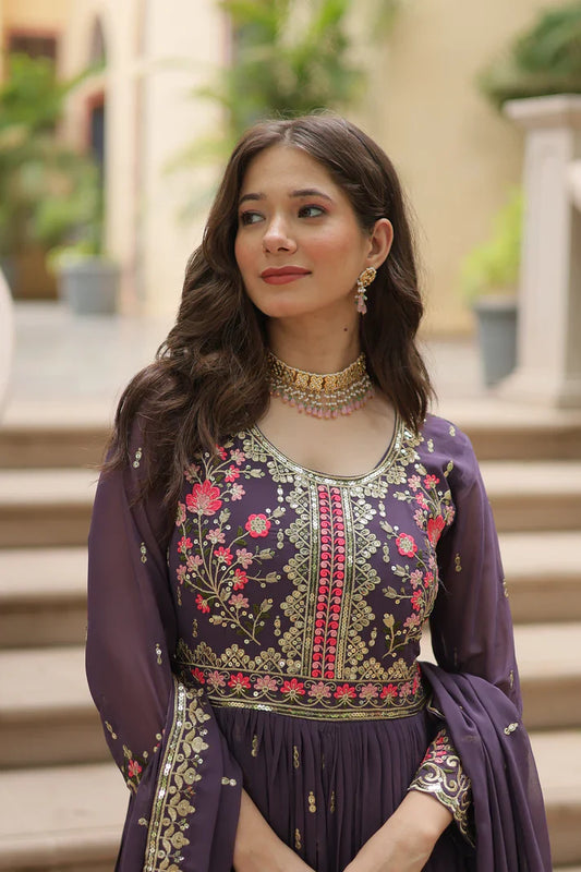 Desirable Women's Fully Flair Gown Made With Star Georgette Fabrics and Designer Embroidered Dupatta ππ»(WD01)