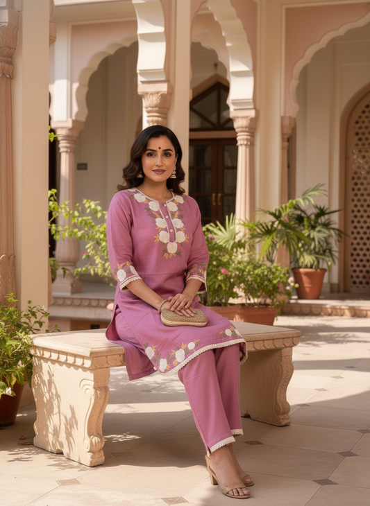 Mauve Floral Embroidered Kurta Set (SWDH20)
