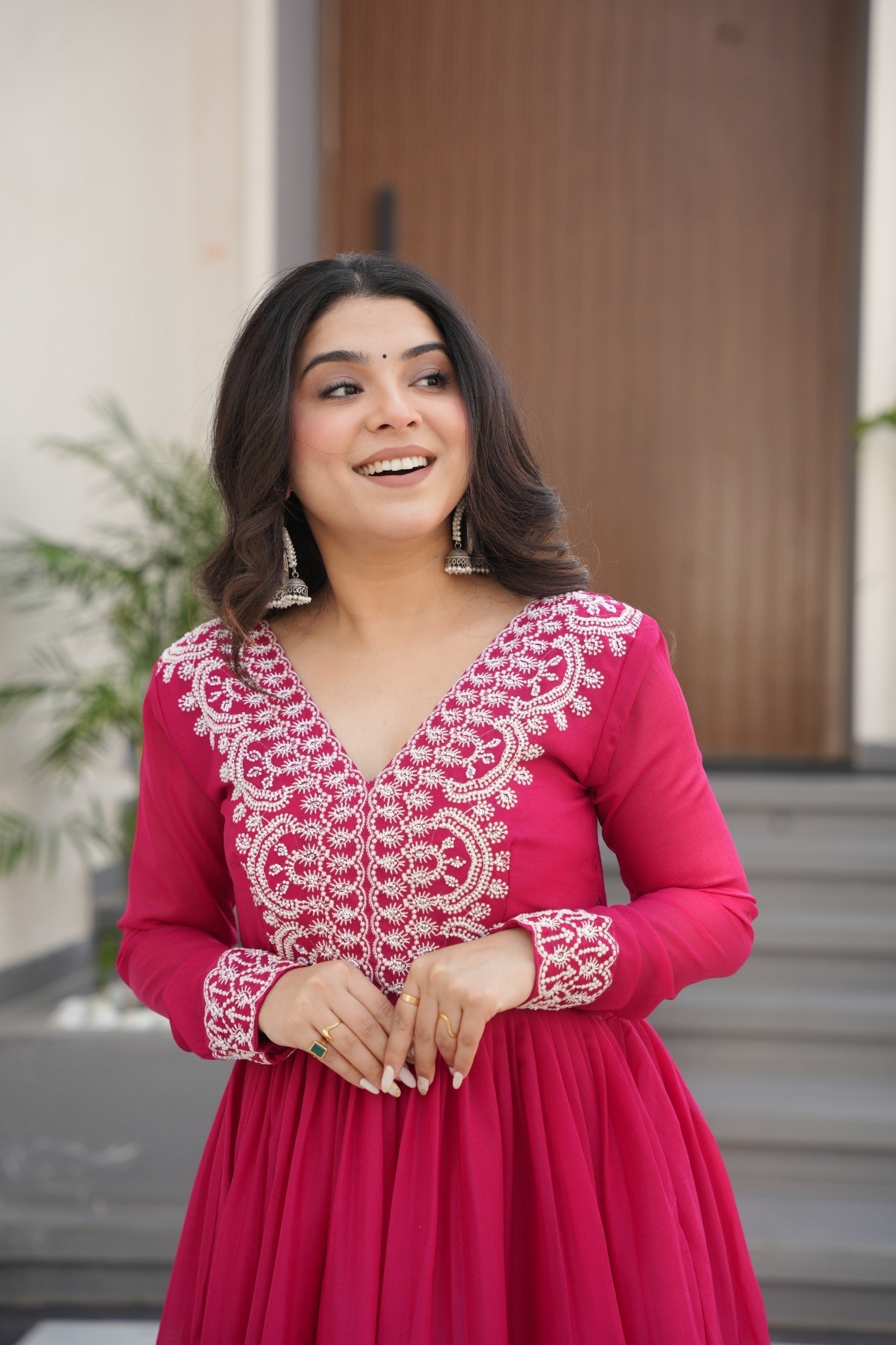BEADS SEQUINS EMBROIDERED STAR GEORGETTE GOWN (WDN51)