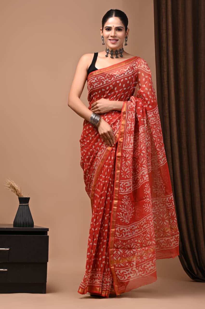 Exclusive hand Block Printed Kota Doria Saree (SWSRKO14)