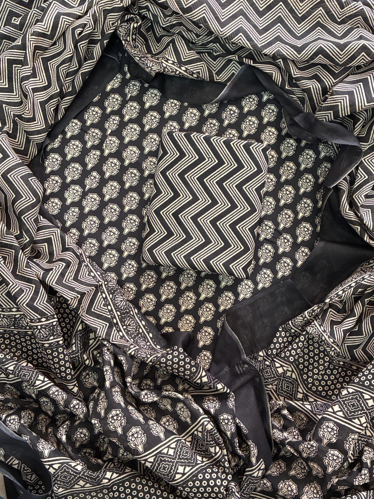 Designer Hand Block Print Cotton Suit Set with Mulmul Dupatta(WACOTMU117)