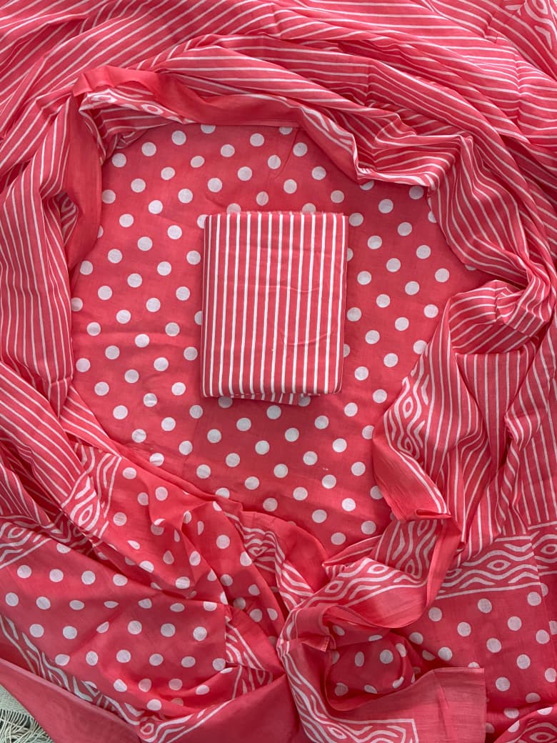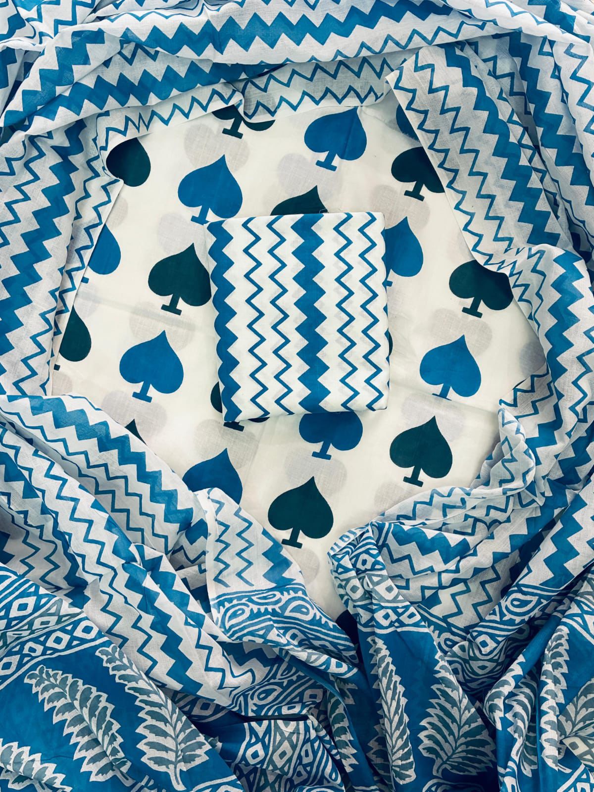 Designer Hand Block Print Cotton Suit Set with Mulmul Dupatta(WACOTMU123)