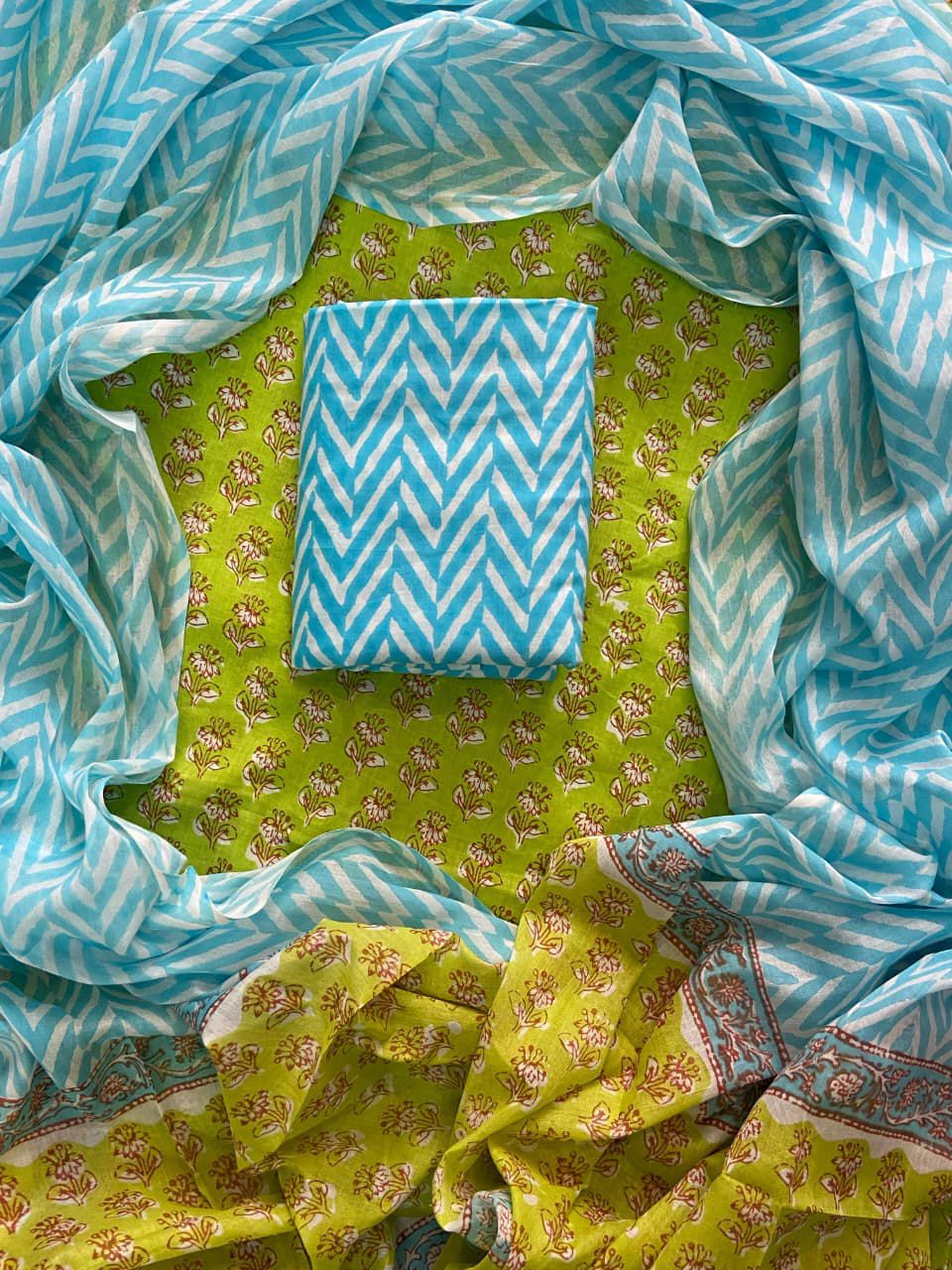 Designer Hand Block Print Cotton Suit Set with Mulmul Dupatta(WACOTMU114)