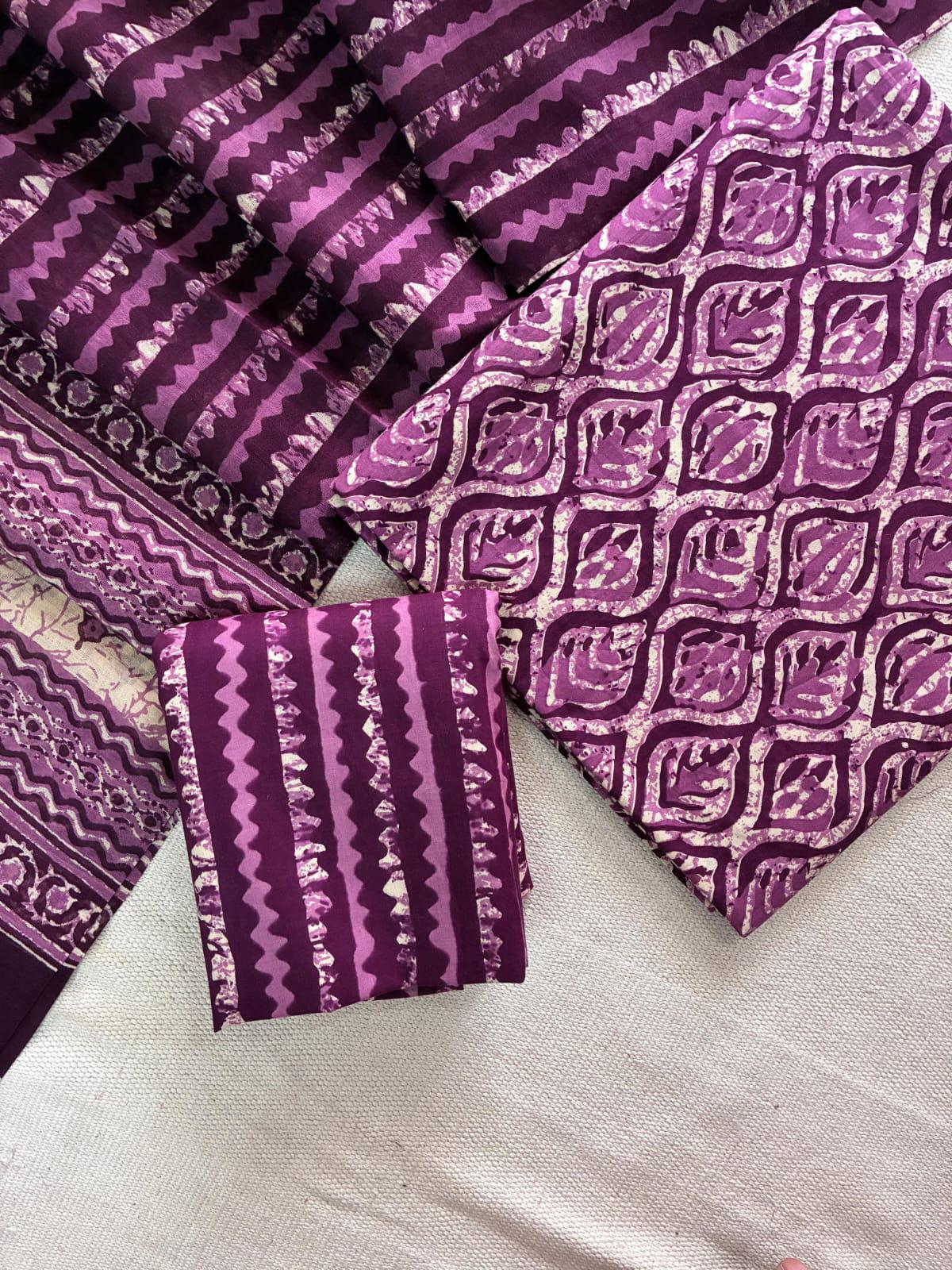 Designer Hand Block Print Cotton Suit Set with Mulmul Dupatta(WACOTMU115)