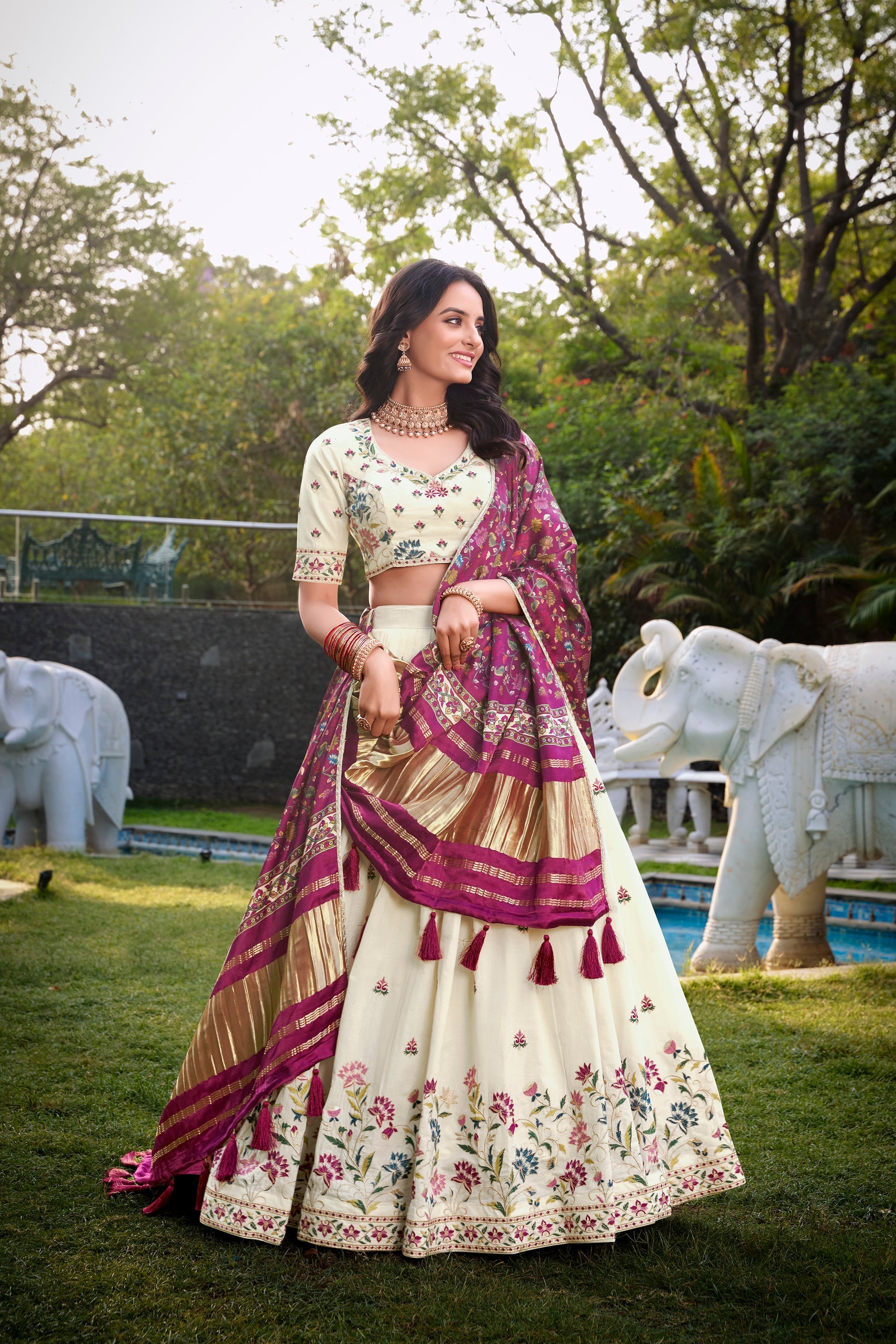 FESTIVAL SPECIAL KHADI COTTON SEQUINS EMBROIDERY LEHENGA CHOLI WITH GAJI SILK DUPATTA (WDN129) 02