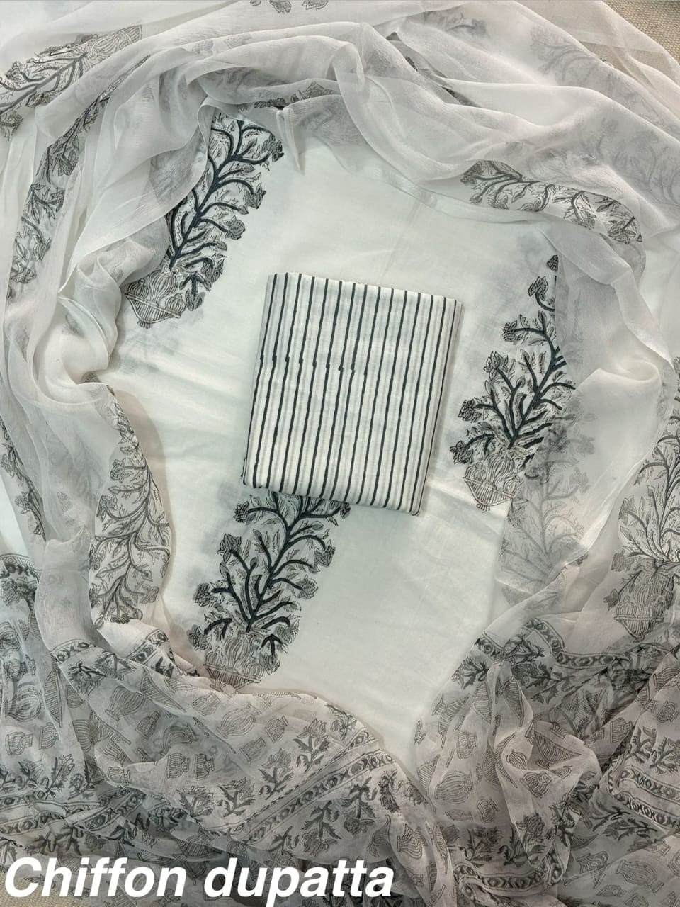 JAAL HAND BLOCK PRINT COTTON SUIT SET WITH CHIFFON DUPATTA(WACFCOTMU06)