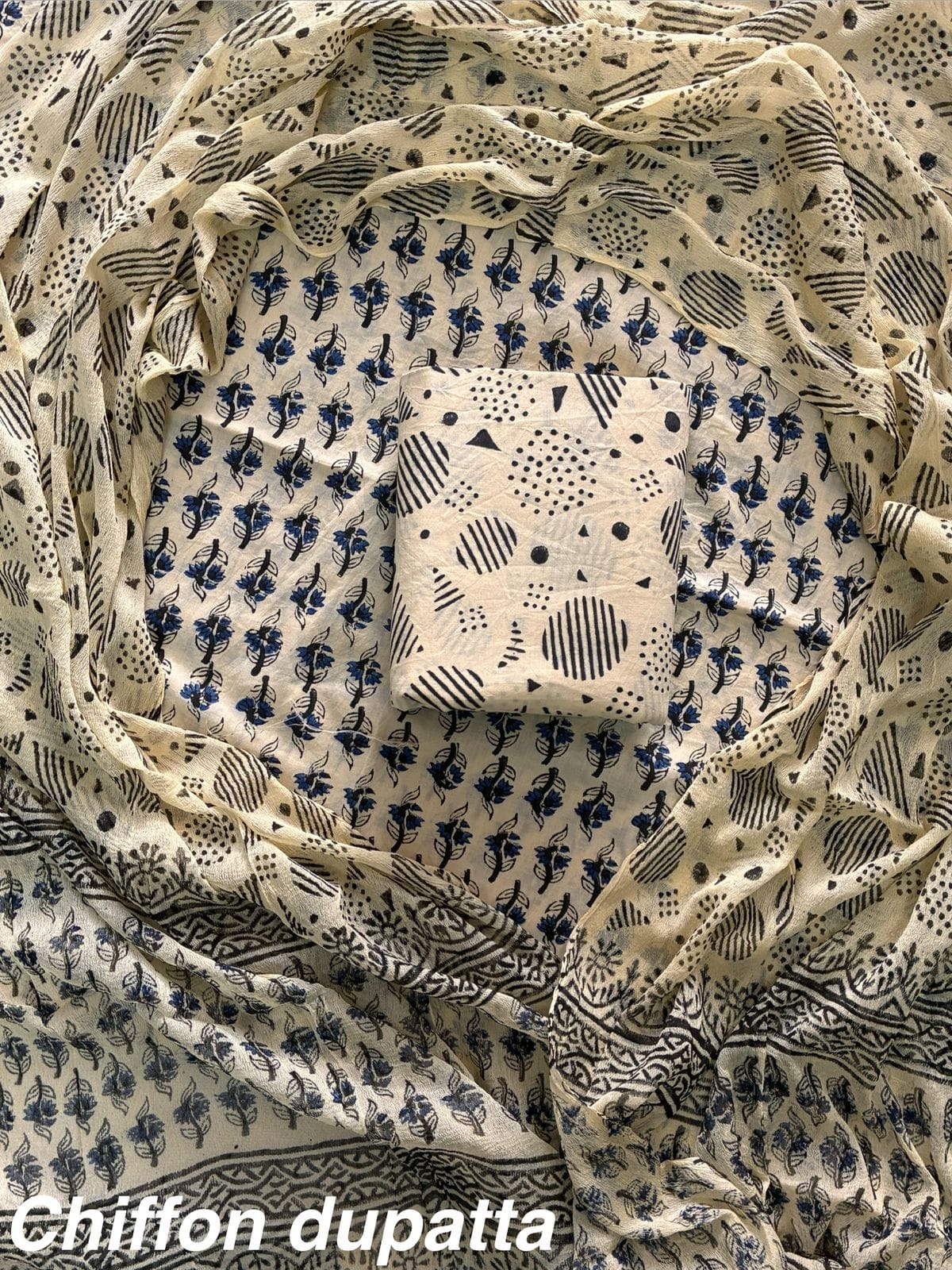 JAAL HAND BLOCK PRINT COTTON SUIT SET WITH CHIFFON DUPATTA(WACFCOTMU07)