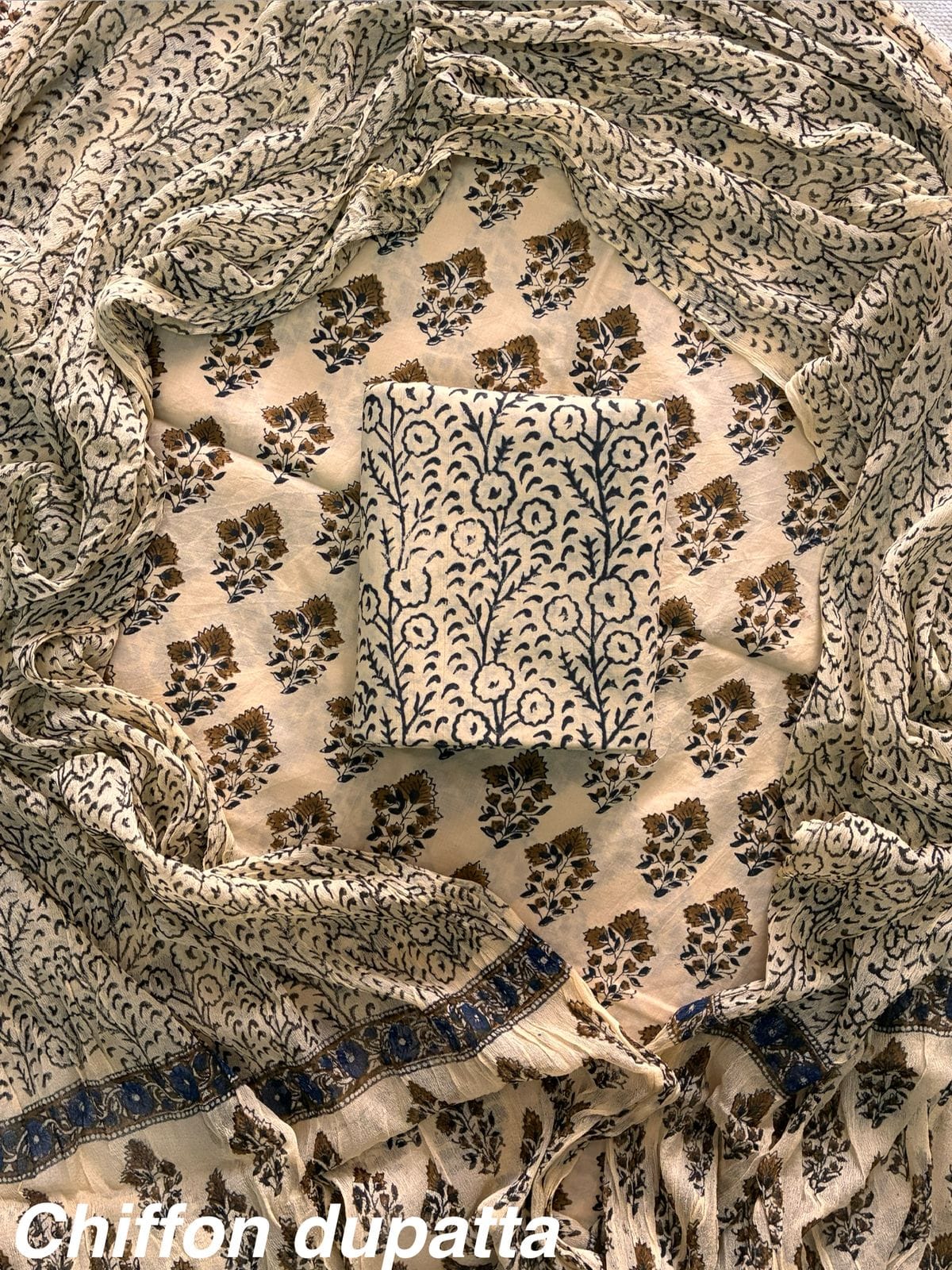 JAAL HAND BLOCK PRINT COTTON SUIT SET WITH CHIFFON DUPATTA(WACFCOTMU09)