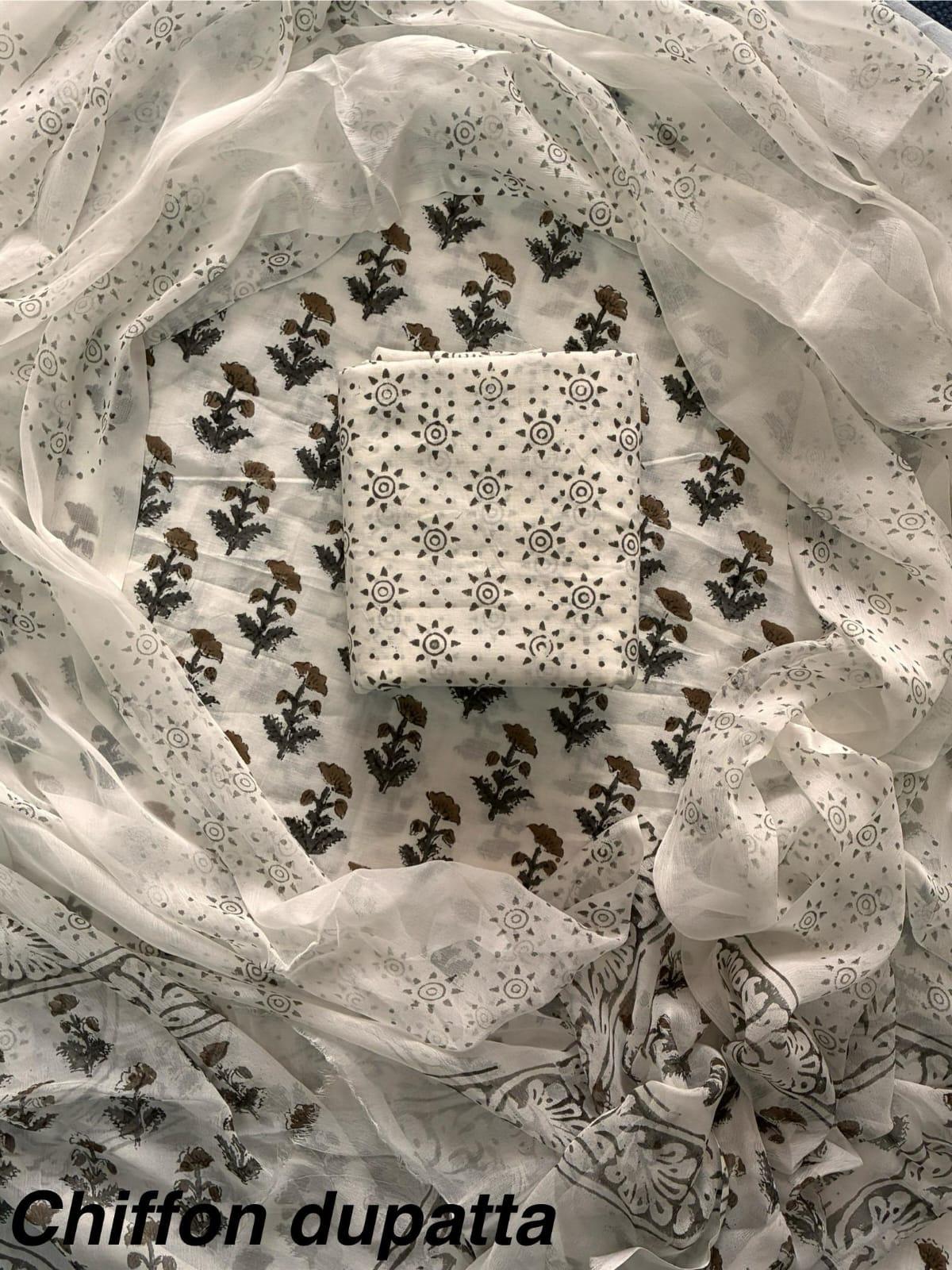 JAAL HAND BLOCK PRINT COTTON SUIT SET WITH CHIFFON DUPATTA(WACFCOTMU152)